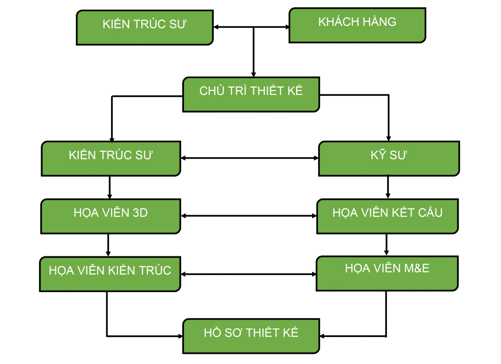 Bộ phận phụ trách việc thiết kế sẽ gặp trực tiệp với khách hàng để lấy ý kiến và nhu cầu của khách hàng về việc thiết kế công trình cho khách hàng. Sau đó sẽ trình bày những phương án thiết kế kiến trúc căn nhà và kết cấu công trình cho chủ trì thiết kế xem xét xét duyệt sau đó sẽ lên kế hoạch lập quy trình thiết kế xây dựng.